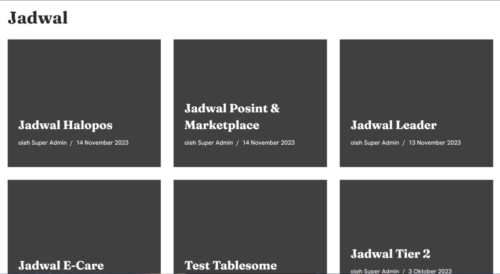 Jadwal lengkap dari setiap divisi contact center posindo.